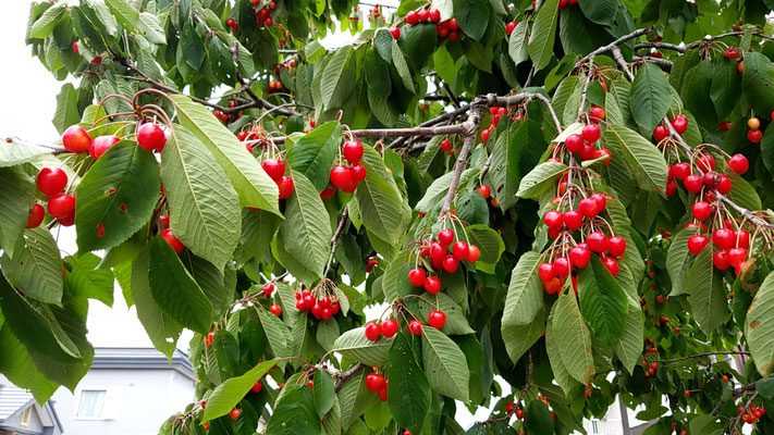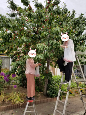 スタッフの家にある、さくらんぼの木に実が沢山なり、さくらんぼ狩りをしてきました♪